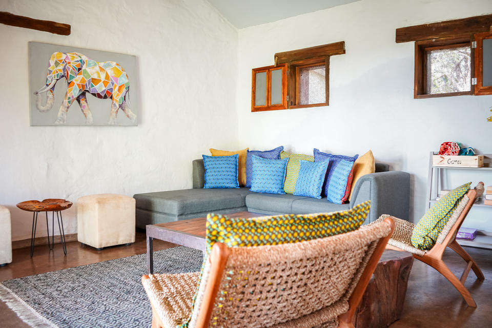 In den 11 Chalets finden bis zu 24 Gäste Platz. Alle Zimmer verfügen über ein eigenes Bad mit Innen- und Außendusche und eine eigene Veranda, um die Aussicht und die Umgebung zu genießen. Die Lodge verfügt auch über einen großen, offenen Hauptbereich, in dem Sie es sich auf den Sofas, an der Bar, im Essbereich oder in der Leseecke gemütlich machen können, sowie einen Pool mit Aussichtsterrasse auf ein privates Wasserloch.