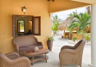 Die Gäste haben auch Zugang zu einer afrikanischen Open-Air-Bar, wo sie ihre Getränke genießen und ihre Snacks genießen können, während sie den atemberaubenden karibischen Sonnenuntergang beobachten. Zu den Freizeiteinrichtungen gehören ein privater Swimmingpool mit eigener Terrasse und Dusche.