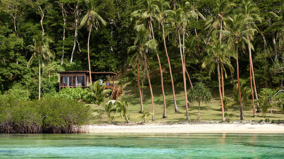 Das Remote Resort, Fidschi-Inseln bietet sieben luxuriöse Villen inmitten der Terrakotta-Kokospalmen auf einer 64 Hektar großen Halbinsel. Jede Villa ist freistehend mit direktem Meerblick und eigenen Tauchpools. Einige verfügen über ein Bad im Freien.