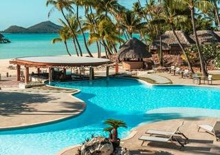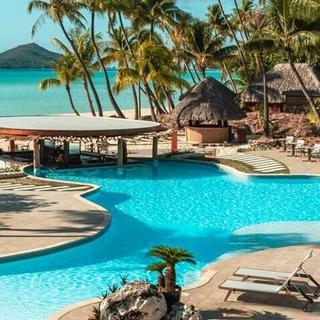Das Bora Bora Pearl Beach Resort & Spa liegt etwa zehn Minuten vom Flughafen entfernt auf dem Motu Tevairoa und bietet einen atemberaubenden Ausblick auf die beeindruckende Kulisse des Berges Otemanu.
