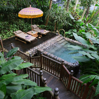 Das Naturresort aus der Feder des Stararchitekten Bill Bensley bietet 22 Luxuszelte mit privatem Pool und von viel freiem Raum. Das Camp-Design erinnert an das aufregende Entdeckungszeitalter, als die ersten Siedler aus Europa ihre Zeltlager im Dschungel von Bali aufschlugen. Angelehnt an die unterschiedlichen Handwerke der Einwanderer besitzt jede der authentisch balinesischen Zeltvillen ihren eigenen Charakter, vom Zelt des Captains bis zum Zelt des Astronomen, Kartographen, Archivaren, Architekten, Zimmermanns, Ornithologen, Farmers, Bäckers…
