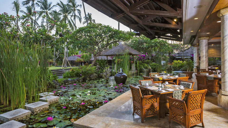 Das hochklassige Nusa Dua Beach Hotel & Spa heißt Sie in authentisch balinesischem Stil willkommen. Sie überblicken den Strand von Nusa Dua und den gepflegten tropischen Hotelgarten. Mit drei Pools bietet das Hotel Abwechslung vom Strandtag. In den fünf Restaurants genießen Sie balinesische sowie mediterrane Küche. Lassen Sie sich im Spa verwöhnen, Ihre Kinder sind im Gecko Kid’s Club spielend versorgt. Nutzen Sie auch die unzähligen Angebote vor Ort und erlernen Sie so zum Beispiel einen traditionellen balinesischen Tanz.