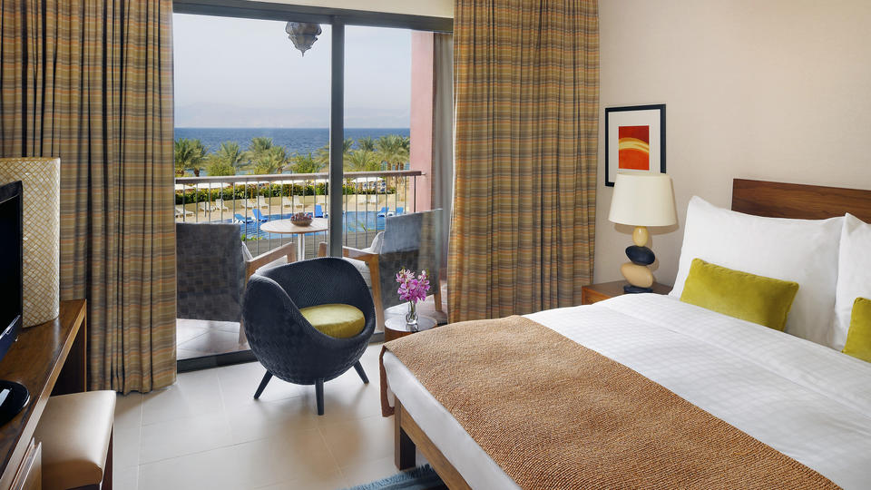Alle 306 Zimmer und Suiten sind großzügig geschnitten, modern eingerichtet und verfügen über einen Balkon mit Blick auf den Pool, das Rote Meer oder die Berge. Sie sind mit Klimaanlage, Flachbild-TV, Tee-/Kaffeezubereiter, Telefon, Fön, Zimmersafe und einer Minibar zur kostenfreien Nutzung ausgestattet.