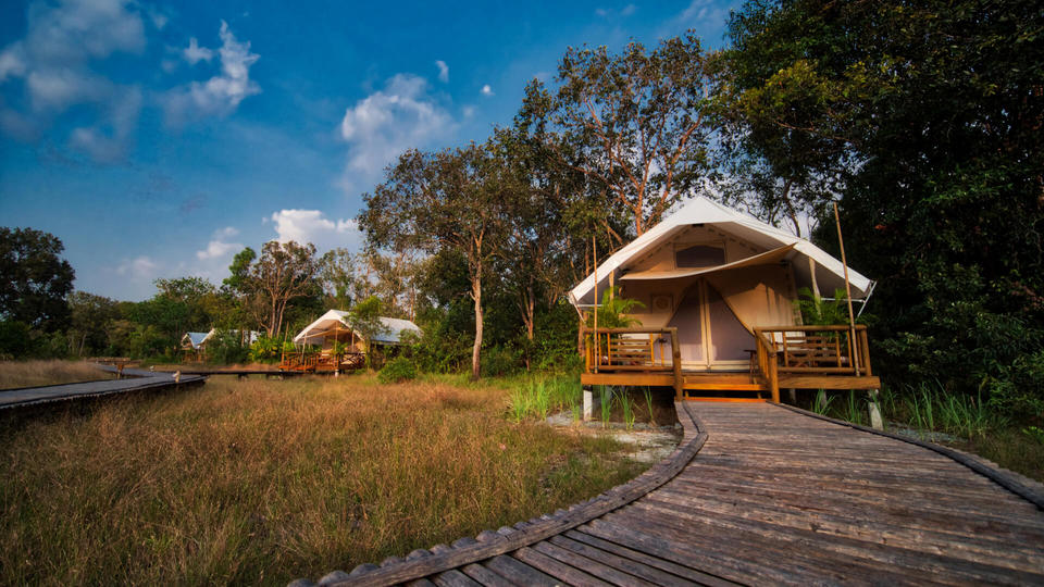 Das Cardamom Tented Camp liegt nahe des Dorfes Trapeang Rung am Highway 48, welcher Phnom Penh und Thailand verbindet. Das Dorf erreichen Sie gut von Phnom Penh, Sihanoukville, Kampot und Kep sowie von Trat in Thailand. Vom Steg im Dorf bringt Sie eine ca. 40-minütige Bootsfahrt entlang der Flüsse Trapeang Rung und Preak Tachan ins Camp. Auf dem Weg zum Camp gelangen Sie mitten hinein in den Botum-Sakor-Nationalpark.