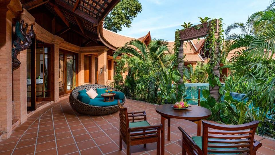 Das Hotel mit seiner bezaubernden Khmer-Architektur bietet seinen Gästen in 46 stilvoll eingerichteten Zimmern Entspannung pur. Dabei blicken Sie auf das Wasser, den Pool, die großen Teiche oder in den Garten. Um das Naturfeeling perfekt abzurunden findet sich neben dem Lotusteich und dem großen Garten zudem eine Regendusche in jedem Badezimmer. In dem vom Teich umgebenen Außenrestaurant L'Auberge des Temples wird authentische Khmer-Küche serviert und auf internationale Speisen muss man auch nicht verzichten. Lassen Sie sich am Pool mit einer Massage verwöhnen oder entspannen Sie auf den Liegeflächen.