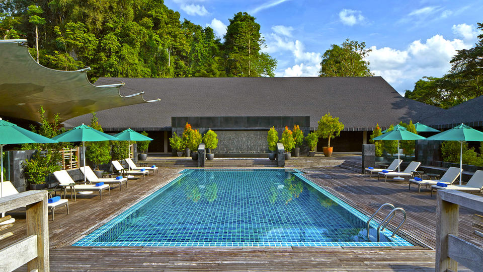 Die luxuriöse Anlage ist auf 3 Meter hohen Stelzen erbaut, mit Holzstegen verbunden und lehnt sich an den Architekturstil einheimischer Langhäuser an. Die klar eingerichteten, hellen Zimmer verfügen über einen privaten Balkon – erfreuen Sie sich an dem freien Blick in die exotisch-üppige Vegetation des umliegenden Regenwaldes. Ein hauseigenes Fitnessstudio und Yoga Raum stehen Ihnen zur Kräftigung und Entspannung zur Verfügung. Lassen Sie sich im Mandara Spa mit Massagen, wohltuender Gesichts- oder Körperbehandlungen verwöhnen und genießen sie in einer privaten Spa-Suite die friedvolle Atmosphäre in vollen Zügen. Die zur Natur offene Lobby, ein großzügiger Aufenthaltsbereich und die Sonnenterasse am Pool runden das bezaubernde Gesamterlebnis ab. Vom hauseigenen Anlegesteg bringt Sie das Langboot tief in den Nationalpark direkt in die bizarren Höhlensysteme. Das Resort ist wahrlich eine Oase für alle Sinne.