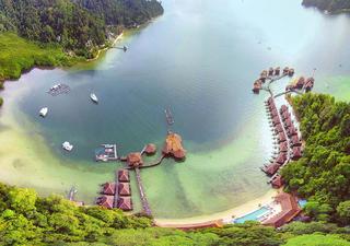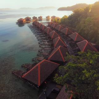 Das Gayana Marine Resort liegt an der halbmondförmigen Malohom Bay von Gaya Island vor der Küste von Sabah, Malaysia Borneo, und ist ein malerisches Reiseziel, das ein Gleichgewicht zwischen Ökologie und luxuriösem Luxus bietet. Die Villen sind hell, modern und elegant eingerichtet und mit Klimaanlage, WLAN, Fernsehern, komfortablen Sitzbereichen/Wohnzimmern, Tee-/Kaffeekocher, Haartrocknern und eigenen Bädern ausgestattet. Die Gäste können im hauseigenen Restaurant speisen, das köstliche westliche und malaysische Fusionsgerichte serviert, oder an der Bar bei einem tropischen Cocktail und einem Teller mit leckeren Snacks entspannen. Zu den weiteren Annehmlichkeiten und Dienstleistungen gehören ein direkter Zugang zum Strand, ein Swimmingpool, ein Spa, Meeresaktivitäten und eine Rezeption.
