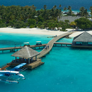 Die Anreise erfolgt mit einem 45-minütigen Panoramaflug mit dem Wasserflugzeug vom internationalen Flughafen Velana.