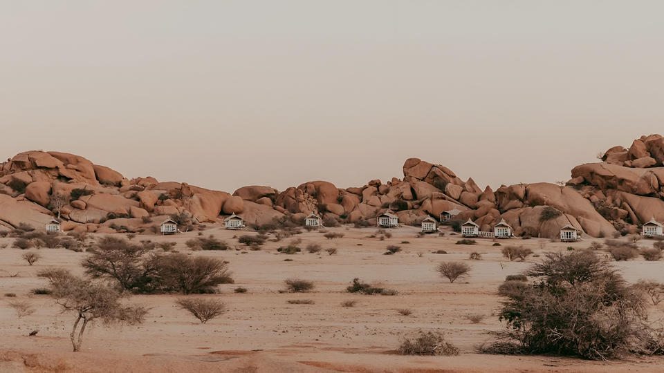 Die Lodge liegt am nördlichen Rand des Spitzkoppe Inselbergs, zwischen riesigen Granitfelsen, die vor mehr als 150 Millionen Jahren entstanden sind, mit atemberaubendem Blick auf den Brandberg und das Erongo. Die stilvolle Privatunterkunft besteht aus 15 geräumigen, geschmackvoll eingerichteten Chalets, die jeweils über ein eigenes Bad und eine Außenterrasse verfügen, die den Gast zu weitläufigen, unberührten Sandfeldern und Felsbrocken führt.