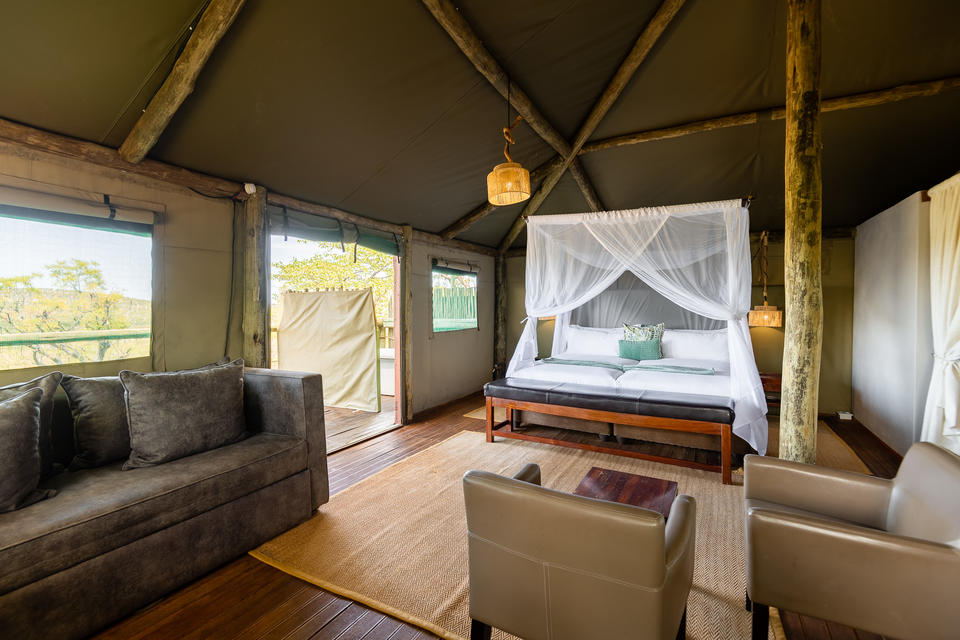 In der Eagle Tented Lodge wohnen Sie sehr nahe an der Natur in authentischen Safarizelten und müssen doch auf den Luxus einer festen Unterkunft nicht verzichten.