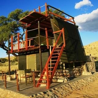 Camp Gecko Private Nature Reserve & Tented Camp befindet sich auf der D1275 direkt unterhalb des Spreetshoogte Pass. Die Unterkunft im Camp Gecko befindet sich in Buschzelten, einem Buschversteck und einem Familienhaus zur Selbstverpflegung. Jedes Zelt verfügt über eine Dusche und ein WC und das Camp liefert Bettwäsche und Handtücher. Die Zelte sind nicht elektrisch, aber Licht wird durch Benzinlampen zur Verfügung gestellt und Kameras können auf dem Bauernhof geladen werden. Im Camp Gecko befindet sich ein Lapa, ein schöner Treffpunkt, der sich auf den Buschzelten oberhalb der Buschzelte befindet. Im Lapa genießen Sie köstliche Mahlzeiten, während Sie auf der Terrasse speisen, einen atemberaubenden Blick auf die Savanne genießen.