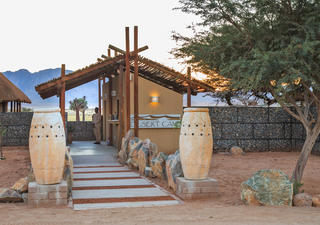Gäste des Desert Camp, die nicht selbst kochen möchten, können das Restaurant der nahegelegenen Sossusvlei Lodge nutzen, das ca. 5 Minuten die Straße hinunter zum Eingang des Namib Naukluft Parks liegt.