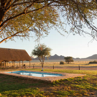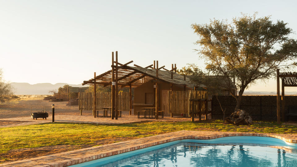 Das Desert Camp liegt nur 5 km vom Eingangstor zum Sossusvlei und Sesriem Canyon im Namib Nauklauft Park entfernt. Unter jahrhundertealten Kameldornbäumen bietet das Desert Camp unübertroffene Ausblicke auf die Wüstenlandschaften und die umliegenden Berge - ein absolutes Muss für Naturliebhaber und Fotografen!