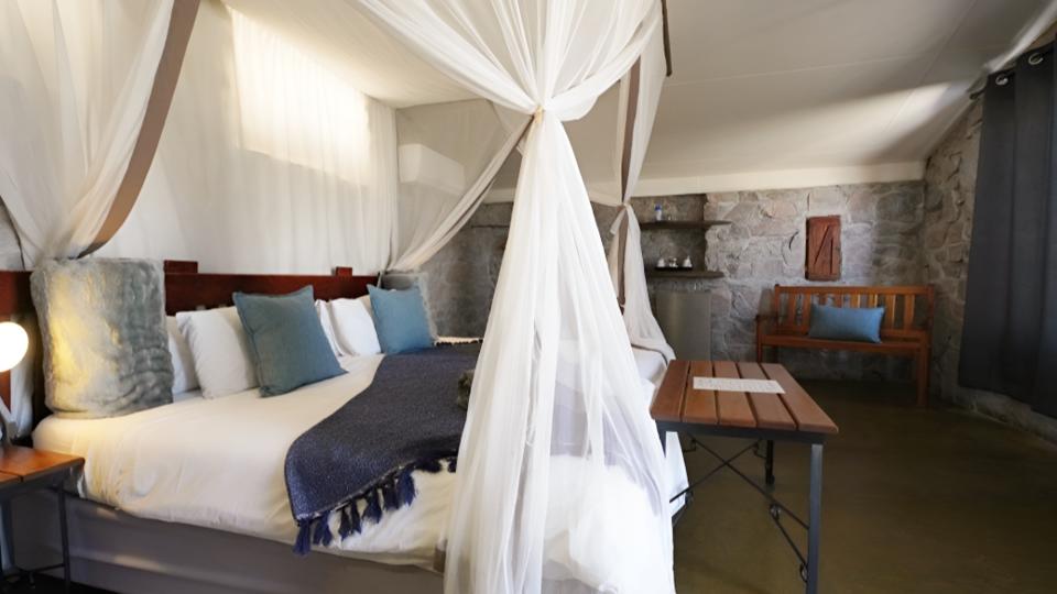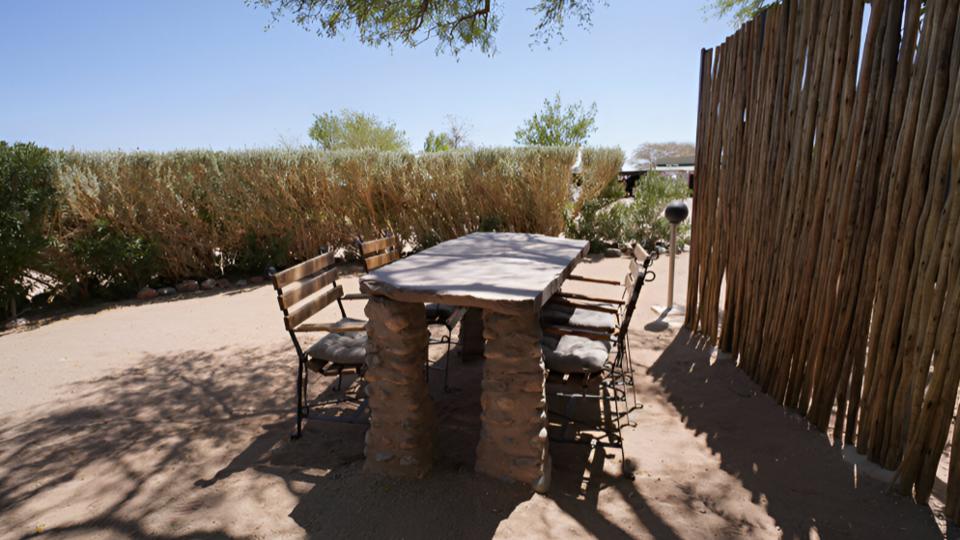 In dieser ausgesuchten Lage wohnen die Gäste in stilvollen Steinchalets, die aus hiesigen Felsen erbaut wurden. Die Little Sossus Lodge garantiert Ihnen einen unvergesslichen Aufenthalt in einsamer Wüstenumgebung.