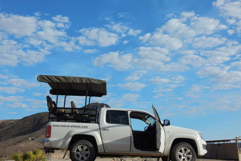 Ein Reiseleiter begleitet Sie in Ihrem eigenem Fahrzeug, erkunden Sie die Gegend um Sesfontein und das Flussbett Hoanib auf der Suche nach den Wüstenelefanten und anderen namibischen Wildtieren, die diese trockenen Landschaften ihre Heimat nennen.