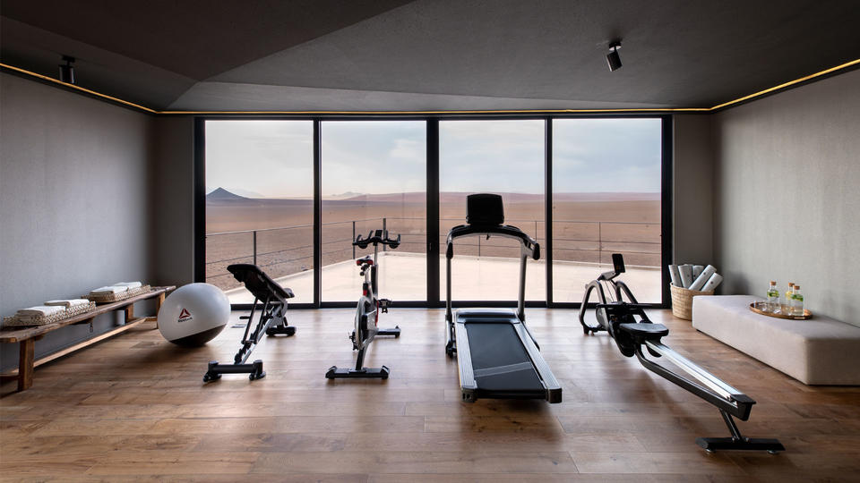 Entworfen, um die Pracht und die Einsamkeit der Wüste einzufangen, sind nur 10 Suiten aus Stein und Glas entlang des Steilhangs verteilt und ermöglichen absolute Privatsphäre. Jede der klimatisierten Suiten fügt sich in die majestätischen Farbtöne der Wüste ein und verfügt über eine eigene Veranda, ein Schlafzimmer auf zwei Ebenen und ein Wohnzimmer mit Kamin, ein verglastes Bad und eine Außendusche. Die Suiten sind mit einem Aussichtsfenster, einer diskreten Musikanlage und einer individuell sortierten Bar ausgestattet.