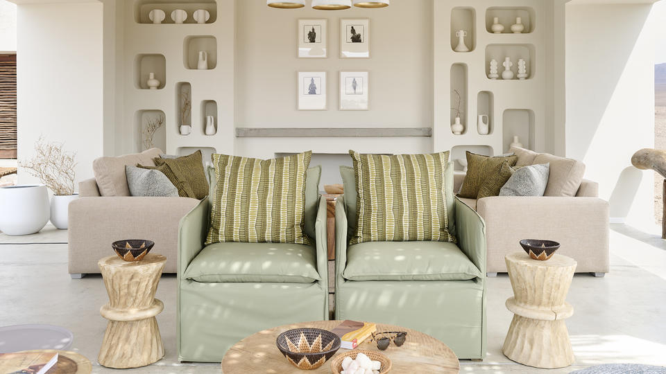 Wenn Sie diesen extrem abgelegenen Ort im Purros Conservancy erreichen, werden Sie mit einer faszinierenden lebendigen Landschaft belohnt. Vielleicht können Sie sogar wüstenangepasste Elefanten vom Sonnendeck oder Pool der Lodge aus beobachten. Die erfahrenen Himba-Guides begleiten Sie auf morgendlichen Wanderungen oder Pirschfahrten am Nachmittag, um einer Reihe von Wüstentieren zu begegnen: den emblematischen Elefanten und Löwen, der ikonischen Giraffe, Hartmanns Bergzebra und einer Vielzahl von Antilopen: Gemsbok, Springbock, Steenbok und Kudu mit ihren ungewöhnlichen gestreiften Flanken und Mähnen und den markanten Spiralhörnern der Männchen. Vogelbeobachter werden ihre Augen nach einheimischen und exotischen Arten offen halten, von großen und tödlichen Geiern bis hin zu zarten Bienenfressern, dem markanten Rüppell-Korhaan und dem Monteiro-Nashornvogel.