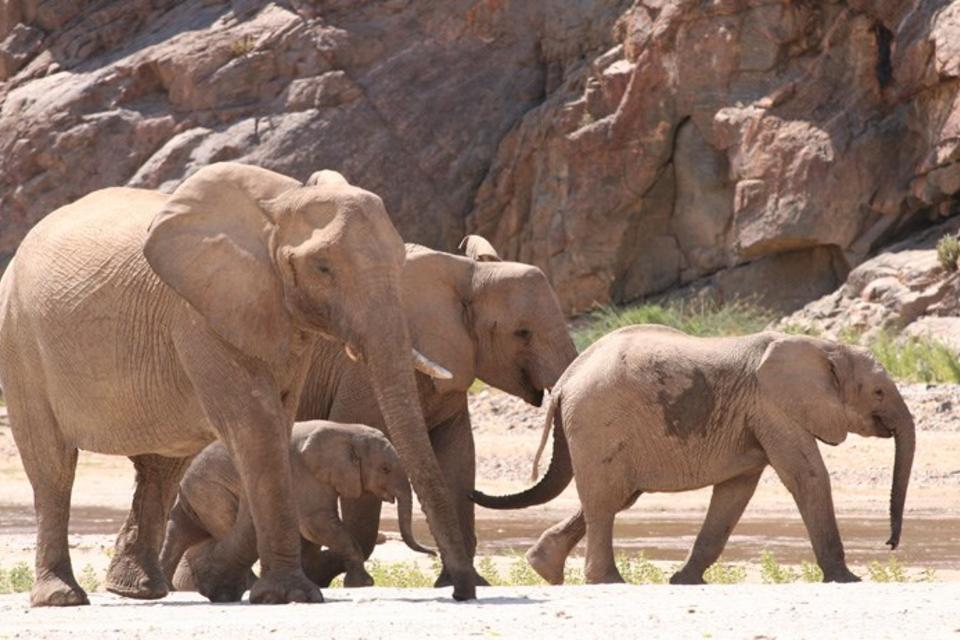 Die Okahirongo Elephant Lodge befindet sich im Purros Conservancy in Kaokoland, einer der letzten wirklich wilden Gegenden im Nordwesten Namibias. Zu den Aktivitäten zählen Pirschfahrten in offenen Geländewagen, die Beobachtung der berühmten Wüstenelefanten, Spaziergänge und Besuche des nahen Himba-Dorfes.