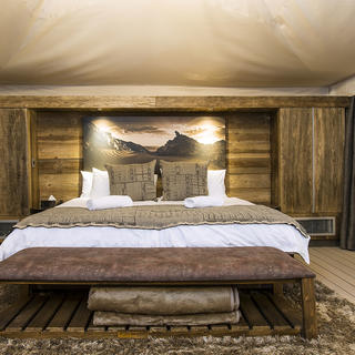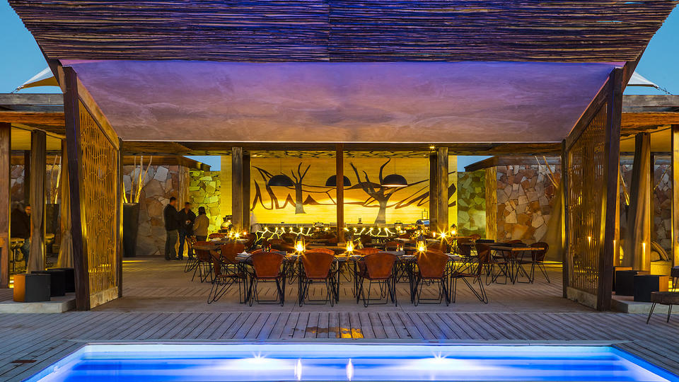 Jedes der 20 freistehenden Luxus-Chalets ist klimatisiert und mit Doppelbetten, Steckdosen, einer eigenen Terrasse, einer Küchenzeile und einem freistehenden Bad mit Pflegeprodukten ausgestattet. Genießen Sie das erstklassige Restaurant, das köstliche namibische Küche serviert, entspannen Sie in der malerischen Bar bei einem kalten Getränk nach einem Tag voller Aktivitäten oder kühlen Sie sich im Freibad mit Blick auf die Elim Düne ab.