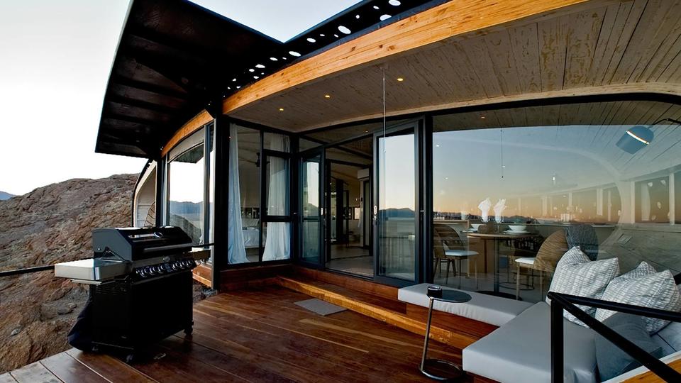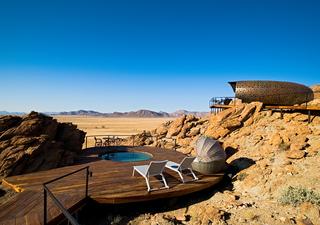 Verborgen zwischen großen Felsbrocken liegt auf einer Erhebung mitten in der Namib-Wüste das Desert Whisper, ein luxuriöses Versteck für zwei in den einsamen Weiten der Namib. Dieses Komplettpaket bietet angenehme Ruhe, Entspannung und ungestörte Zweisamkeit.