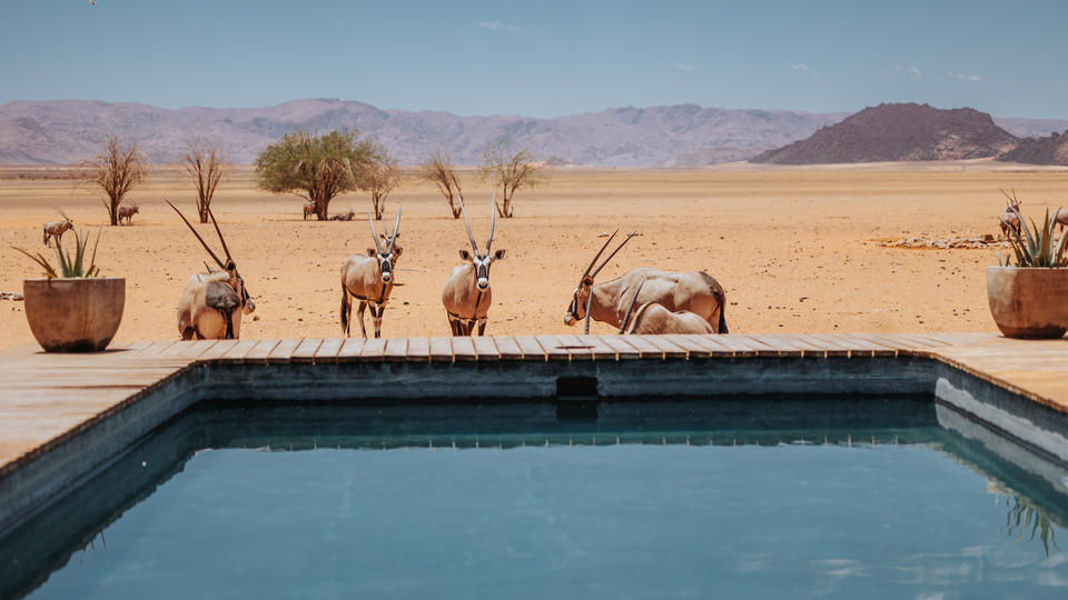 In der 2020 neu eröffneten Kwessi Dune Lodge finden Sie 10 coole und komfortable (und klimatisierte) Chalets mit Leinwänden und Strohdächern. Jedes Schlafzimmer verfügt über einen separaten „Star Gazer“-Raum, vollständig zum Himmel geöffnet und der perfekte Ort, um die himmlische Theatershow zu sehen. Die Aussicht von den Chalets, dem Hauptbereich und dem Swimmingpool geht in die riesigen Weiten der Wüste und wenn Sie Ihre Augen davon losreißen können, genießen Sie Quad-Biken, malerische Fahrten und Spaziergänge, Heißluftballonfahrten, Hubschrauberflüge, Reiten und Tagesausflüge nach Sossusvleii.