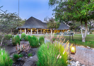 Das Hauptcamp ist strohgedeckt für ein wahres Bushcamp-Feeling. Genießen Sie während Ihres Aufenthalts die friedliche Umgebung des Buschs oder erkunden Sie den Etosha Nationalpark. Am Abend tauschen Sie am Lagerfeuer Geschichten über die Tierbeobachtungen des Tages aus. Die Mahlzeiten werden auf der strohgedeckten Veranda serviert, wo die Wildnis nur einen Schritt entfernt ist.