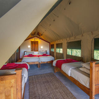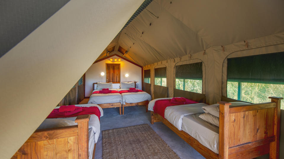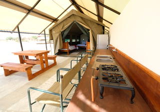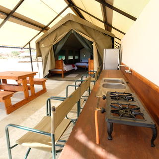 Die vier Namushasha River Camping2Go-Zelte verfügen jeweils über Betten und einem eigenen Bad mit Dusche. Auf der Veranda steht Selbstversorgern eine voll ausgestattete Küche mit Kühlschrank, Herd, Spüle und allen notwendigen Kochutensilien und Besteck zur Nutzung bereit. Es gibt einen mobilen Grill und eine Feuerstelle.