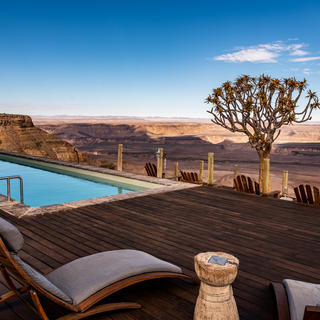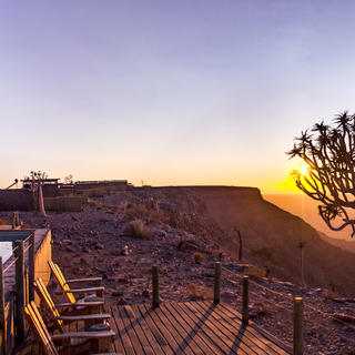 Die Fish River Lodge im Süden Namibias ist die einzige Lodge direkt am Rande des Fish River Canyons und bietet ihren Gästen einen atemberaubenden Blick auf den Canyon von Sonnenaufgang bis Sonnenuntergang.