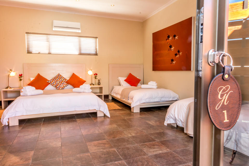 Luxuriöse Suite mit 1 x Doppelbett und 2 x Einzelbetten. En-Suite Badezimmer. Direktwahltelefon. Privater Wandtresor. Mehrkanal-Satellitenfernsehen. Ferngesteuerte Klimaanlage. Bettwäsche aus 100% Baumwolle, Daunendecken und extra lange Betten.