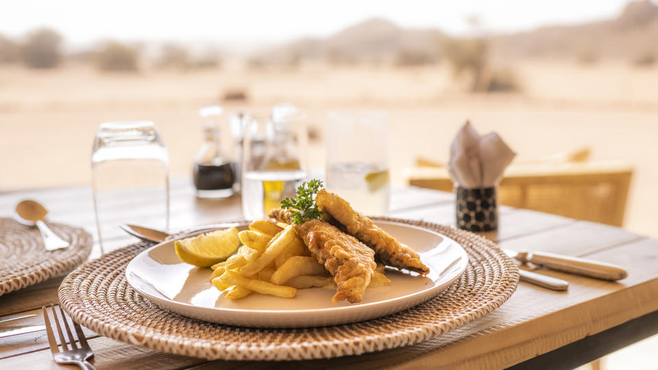 Bei einem Aufenthalt von drei Nächten oder mehr ist eine Tour zur Skeleton Coast inbegriffen, dazu gehört in der Regel eine Fahrt an die Küste und ein Flug zurück zum Camp, um dieses vielfältige Gebiet sowohl vom Boden als auch von der Luft zu sehen.