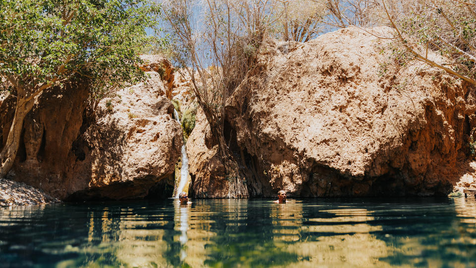 Ongongo bedeutet „magisch“ in der Herero-Sprache. Es ist in der Tat ein wahrhaft magischer, wenn nicht spektakulärer Ort. Eingebettet in eine kleine Schlucht im äußersten Nordwesten Namibias, eine völlig unfruchtbare Landschaft mit einigen Dörfern in der Nähe - sickert hier permanent Wasser einfach aus dem Berg. Das Wasser ist relativ warm, so dass Sie immer schwimmen können.