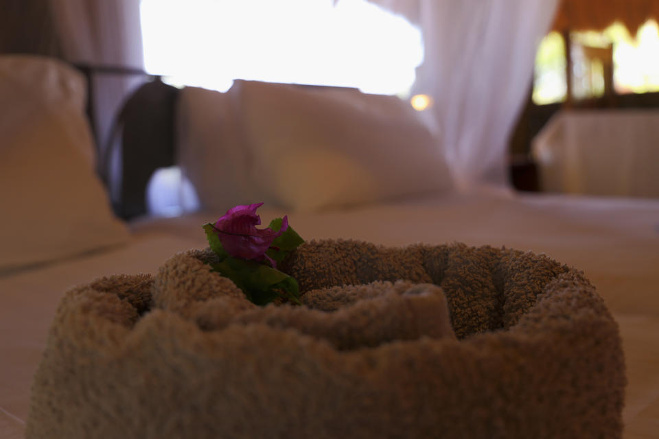 Beide Chalets sind mit einem Doppelbett, eigenem Bad, WC und Moskitonetz ausgestattet. Das dritte Bett ist auf Anfrage erhältlich.