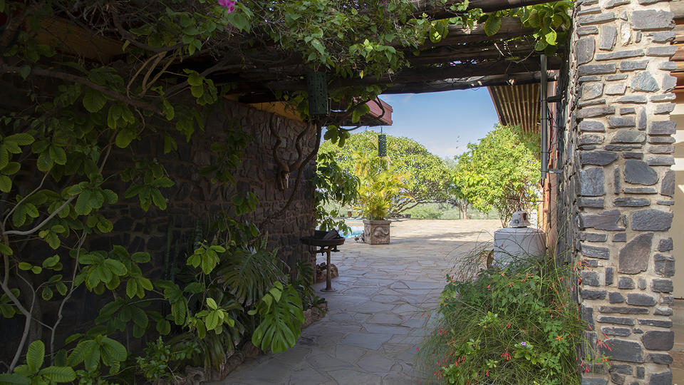 Die Bambatsi Guest Farm liegt auf einem Hügel mit atemberaubendem Blick auf die Mopane-Savanne in Namibia. Die Unterkunftsmöglichkeiten bestehen aus wunderschön eingerichteten Bungalows mit eigener Terrasse, Moskitonetzen, eigenem Bad und bequemen Betten. Zu den weiteren Unterkünften gehört ein Campingplatz, auf dem Naturliebhaber ihre Zelte aufschlagen und die Einrichtungen des Camps nutzen können, zu denen Grillplätze, Gemeinschaftsterrassen und Gemeinschaftsbäder gehören. Zu den Einrichtungen der Unterkunft gehören ein Pool, eine Bar und ein Essbereich.