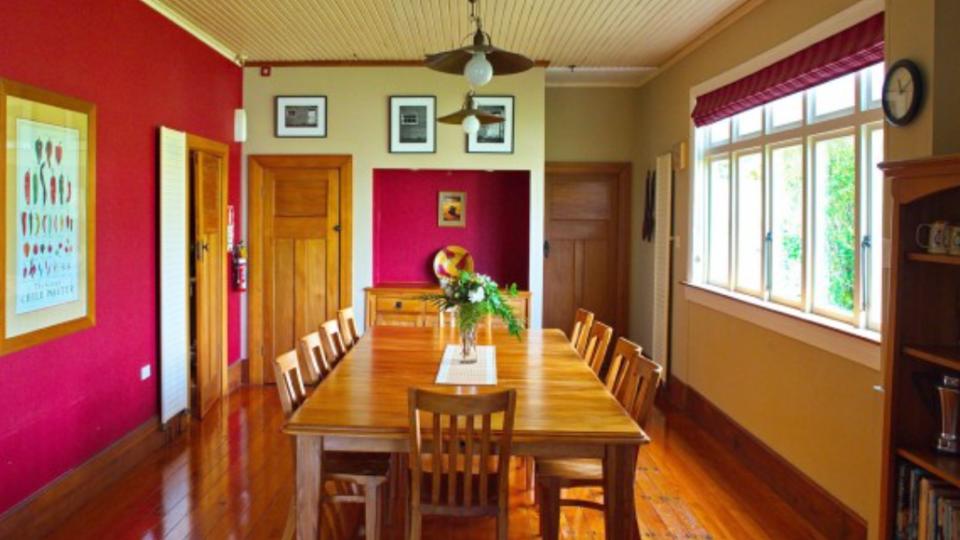 Das Holly Homestead wurde 1926 erbaut und befindet sich in Franz Josef, Neuseeland. Das Rimu-Holz des Kolonialhauses scheint Geschichte zu flüstern. Holly Homestead ist ein hervorragendes Beispiel für Kunst- und Handwerksarchitektur gemischt mit lässigem Country-Chic. Das Gehöft bietet eine Vielzahl von Unterkünften, die alle mit einem eigenen Bad ausgestattet sind.