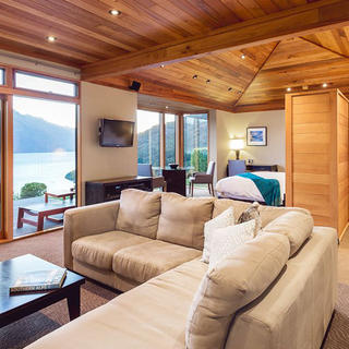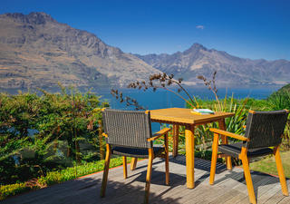 Die Azur Lodge ist eine wunderschöne Unterkunft inmitten von 3,5 Hektar einheimischen Busches. Es liegt auf einem Hügel und verfügt über eine prächtige Lodge und neun 75 Quadratmeter große, freistehende Villen. Die Lodge bietet einen spektakulären, unverbauten Blick auf die Bergketten und den Lake Wakatipu. Es ist ein überaus ruhiger und abgelegener Ort. Azur liegt 20 Minuten vom Flughafen Queenstown und nur 5 Minuten von der Innenstadt entfernt.