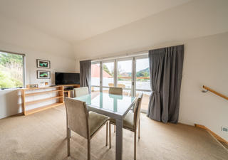 Freuen Sie sich auf eine geräumige Lounge mit offenem Schnitt und Esszimmer, die mit hochwertigen Stoffen und Möbeln eingerichtet sind. Freuen Sie sich auf einen großzügigen privaten Balkon auf Restaurants im Freien mit Blick auf den Fluss Mangawhero und den Nationalpark Tongariro.