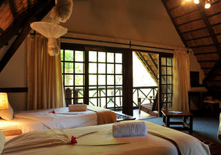 Die Victoria Falls Waterfront Lodge liegt am nördlichen Ufer des Sambesi, etwa 4 km flussaufwärts von den Victoria-Wasserfällen, gegenüber der Insel Siloka.