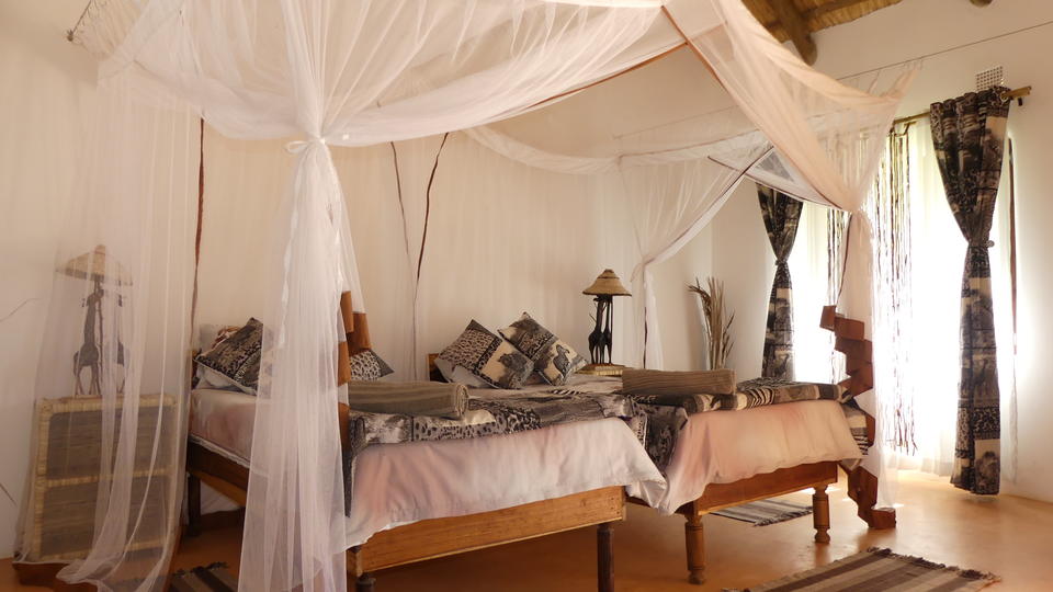 Die neu gebaute Wild Dogs Lodge liegt nur 15 Minuten vom internationalen Flughafen Lusaka und nur 20 Minuten vom Stadtzentrum von Lusaka entfernt. Die Lodge ist der ideale Ort, um Ihre Sambia Safari Erfahrung zu starten und zu beenden. Die 4 traditionell reetgedeckten Chalets sind komfortabel, gemütlich und bieten Platz für bis zu 20 Personen in 10 Zimmern. Alle Zimmer sind mit lokalen Möbeln ausgestattet und verfügen über ein eigenes Bad mit WC und Dusche. Die Chalets sind von einem üppigen Garten umgeben. Erfrischen Sie sich und entspannen Sie am 18 m langen Pool. Alle Mahlzeiten werden entweder im gemütlichen Restaurant oder auf der Terrasse am Pool serviert. Die Bar lädt zum entspannten Sundowner am Ende eines aufregenden Tages ein.