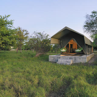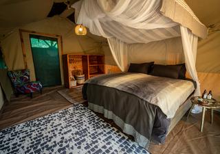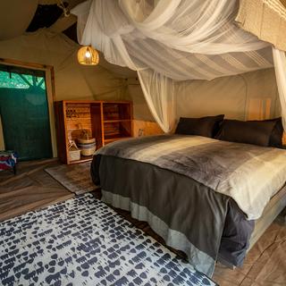 Jedes der Zelte im Meru-Stil ist äußerst komfortabel und verfügt über ein eigenes Bad. Die Waschungen bestehen aus einem Waschbecken, Spültoiletten und einem Eimerduschsystem, bei dem das Personal den Tank auf Anfrage mit ausreichend heißem Wasser für eine Dusche füllt.