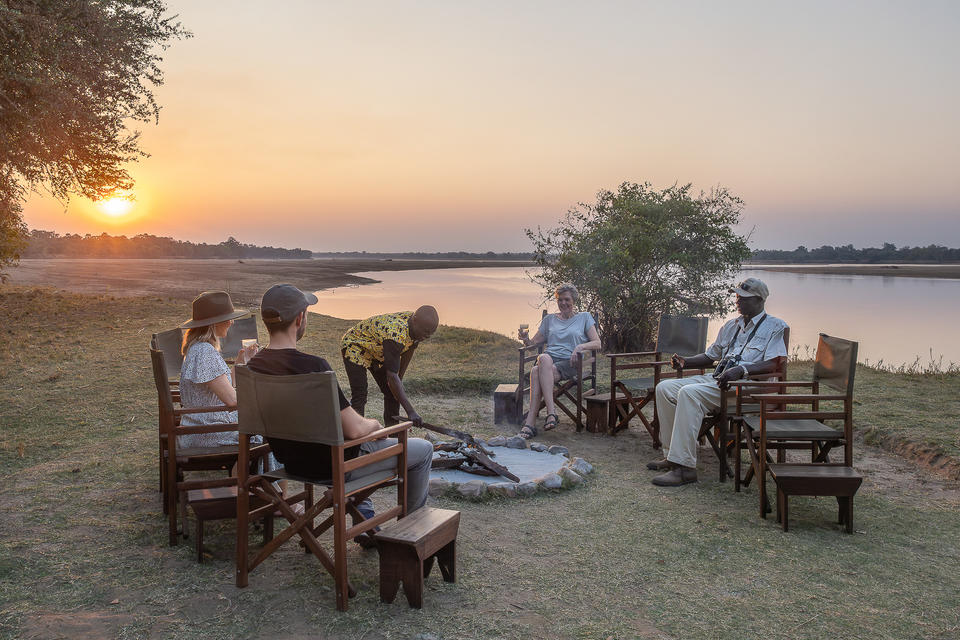 Die Mahlzeiten im Island Bush Camp finden im Schatten des Grasdaches oder unter den Sternen am Ufer des Luangwa River statt. Stellar Mahlzeiten kommen aus der Buschküche, die am Ende des Aufenthalts besucht werden kann.