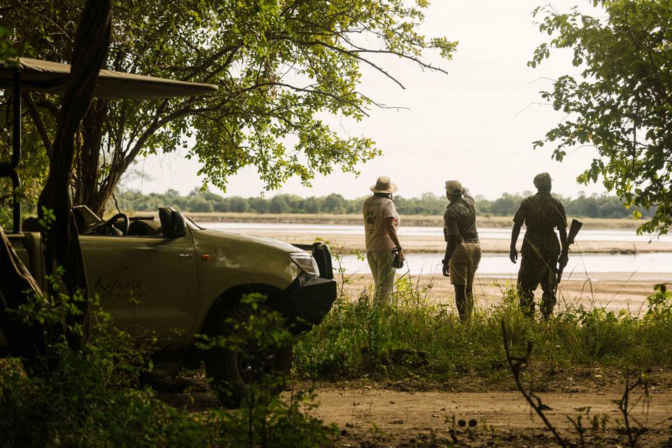 Jedes der fünf Chalets ist auf Stelzen gebaut, mit offenen Seiten, um einen offen Ausblick auf den Fluss Luangwa zu haben. Das Schlafzimmer erstreckt sich auf einer Aussichtsplattform. Das Badezimmer ist mit einer Eimer-Dusche, einem Waschbecken mit fließendem Wasser und einer Spültoilette ausgestattet.