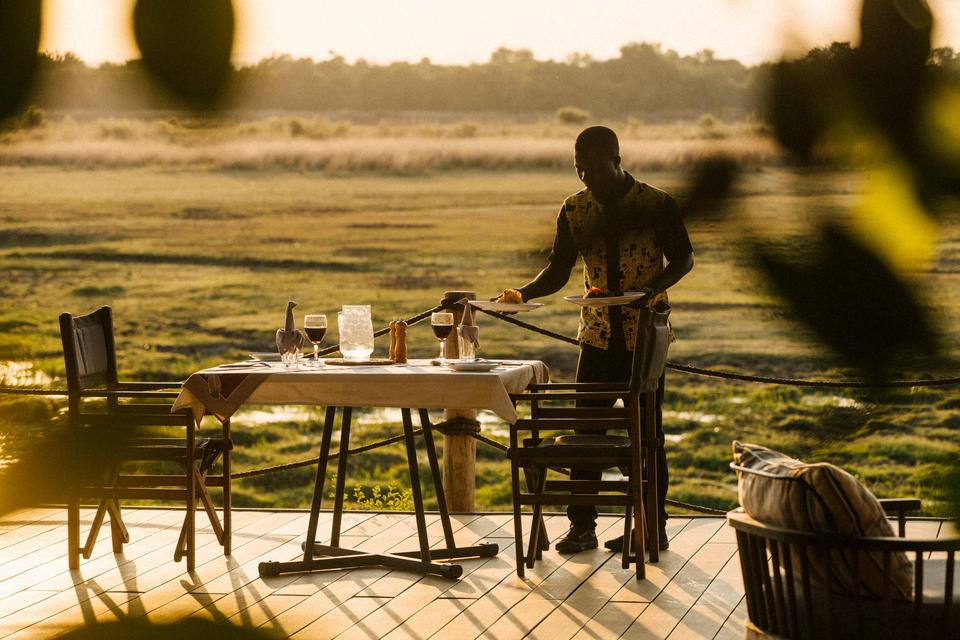 Das Kafunta serviert ein leichtes Frühstück vor der morgendlichen Aktivität oder ein warmes Frühstück für die Gäste im Camp, gefolgt von einem Mittagessen am Buffet. Das Abendessen ist eine 4-Gang-Menu, die auf dem Hauptdeck mit direktem Blick auf die Hochwasserebene serviert wird!