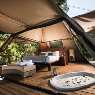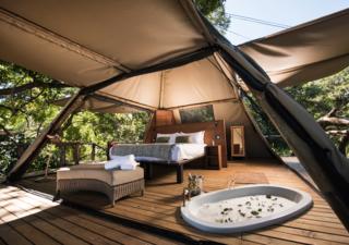 Kühlen Sie sich an den heißesten Stellen des Tages in unserem Lager-Tauchbecken ab und halten Sie Ausschau nach einem Elefanten oder Kudu, der möglicherweise gerade am Camp vorbeikommt.