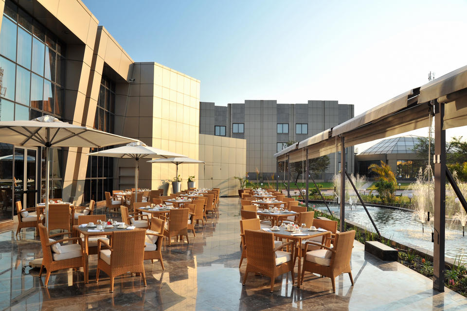 Die Terrasse ist eine Erweiterung des eleganten Restaurants Filini im Freien und bietet neben dem beruhigenden Klang der Wasserfontänen dieselben exquisiten Angebote. Das Ambiente im Freien ist ideal für köstliche Mahlzeiten oder sogar für ein ungezwungenes Beisammensein unter der sambischen Skyline.