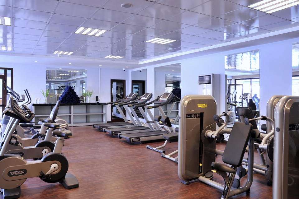 Ein exklusives Fitnesscenter mit hochmodernen Geräten steht täglich von 7.00 bis 22.00 Uhr zur Verfügung, um den modernen Anforderungen und den Terminen vielbeschäftigter Gäste und Mitglieder gerecht zu werden. Das Fitnesscenter umfasst einen großen Außenpool, Schließfächer, Duschen, eine Sauna und ein Dampfbad.