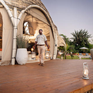 Wachen Sie auf und hören Sie die sanften Geräusche unseres Nachtportiers, der „Knockie, Knockie“ ruft. Er hätte eine Flasche mit heißem Wasser an die Rückseite Ihres Zeltes geliefert, falls Sie sich einen Moment Zeit nehmen und inmitten der Weckrufe der Vögel ein heißes Getränk auf Ihrem Deck genießen möchten. Sie werden dann von Ihrem Reiseleiter abgeholt und zum Hauptgebäude begleitet.