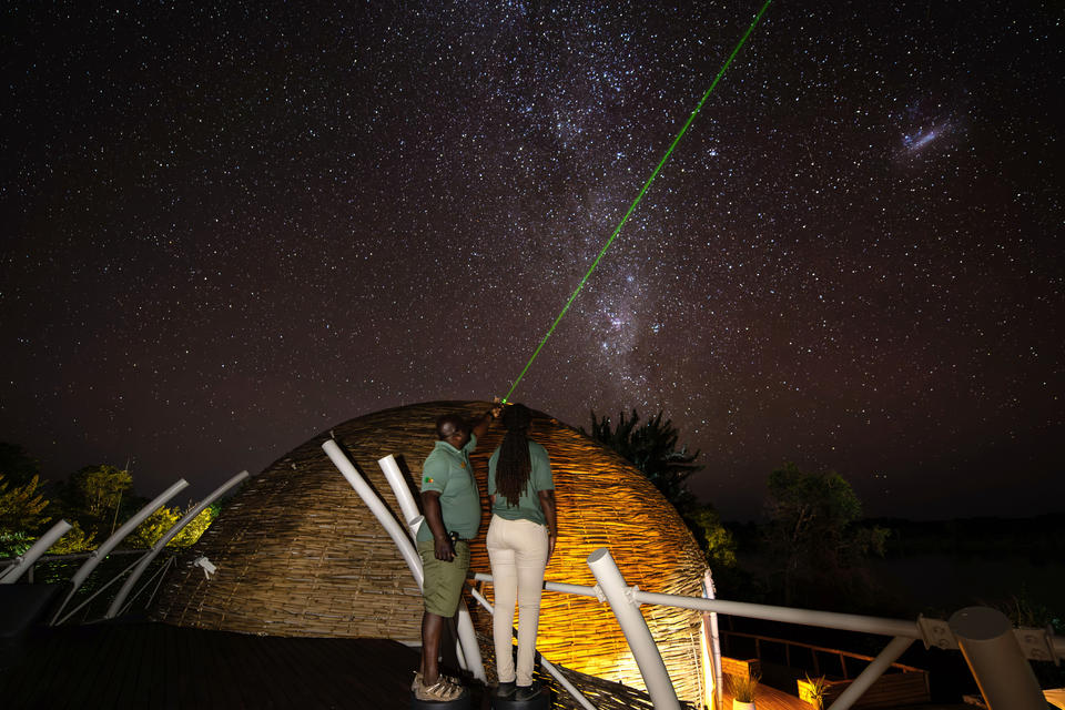 Unsere Infinity-Boma verfügt über eine eigene Terrasse zur Sternenbeobachtung, auf der die Guides den Gästen gerne die Wunder des Nachthimmels zeigen. Dank der minimalen Lichtverschmutzung ist der Himmel im Kafue-Nationalpark außergewöhnlich klar und bietet atemberaubende Ausblicke auf Sterne, Planeten und Himmelsphänomene. Sie können Sternbilder der südlichen Hemisphäre wie das Kreuz des Südens, den Zentaurus und die Magellanschen Wolken bestaunen. Je nachdem, wann Sie uns besuchen, haben Sie möglicherweise auch die Möglichkeit, besondere astronomische Ereignisse wie Meteoritenschauer, Finsternisse oder Planetenausrichtungen zu beobachten.
