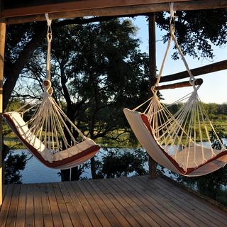 Das Camp bestehend aus vier Zelten, das am Rande eines hohen Ufers über einem Arm des Sambesi thront, es ist der perfekte Platz um Wildtiere zu beobachten. Egal, ob Sie das ganze Camp für eine große Gruppe nehmen oder nur ein Zelt für zwei Personen, Sie können sich Stilvoll entspannen und den Fluss an sich vorbei ziehen lassen.