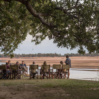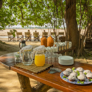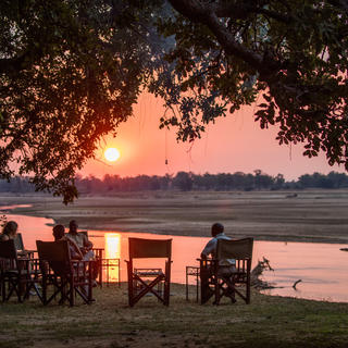 Bei Fahrten am Nachmittag werden Sundowner mit Blick auf den Luangwa-Fluss genommen. Danach wird die Fahrt im Dunkeln mit Hilfe eines Scheinwerfers fortgesetzt.