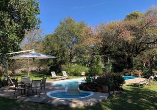 Die Lodge verfügt über geräumige Sonnenterrassen, eine Lounge, von der aus man den Panoramablick genießen kann, und herrliche Gärten mit einzelnen Cottages, die auf den Rasenflächen und entlang des Flusses verteilt sind. Ein einladender Swimmingpool ist von Steingärten umgeben.